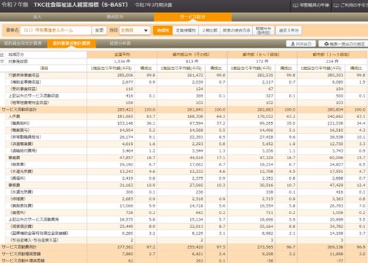 【令和7年版「TKC社会福祉法人経営指標(S-BAST)」の基本分析表の画面】