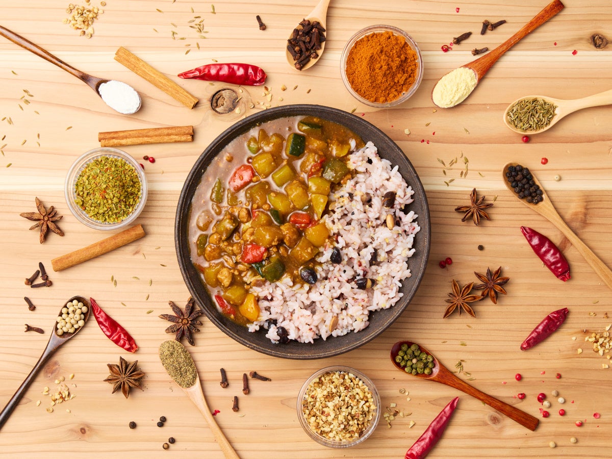 6種のスパイスを自由に組み合わせて、18通りの味わいが楽しめる「スパイストッピング」が新たに加わりました。また、雑穀米にぴったりの「鯖フレーク」や、やさしい味わいの「ブイヨンスープ」も平日限定で提供しています。さらに、「筑前煮」や「肉じゃが」などの和食メニュー、大人向けの「明太あさりうどん」など、計6種のおかずメニューを日替わりで提供しています。