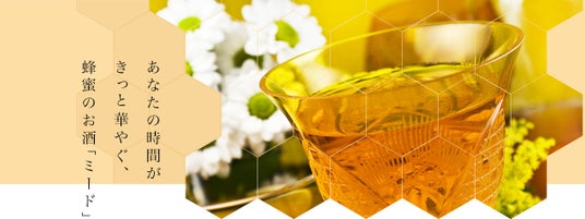 「ミード(Mead)」は、蜂蜜と水に酵母菌を加え発酵させてできあがる「醸造酒」で、ワインや飲料アルコールに蜂蜜を溶かした「ハニー○○酒」とは異なります。アルコール度数はワイン並みで、すっきりした風味のドライタイプから濃厚な甘口、そしてシャンペンのようなスパークリングまでバラエティーに富んだテイストが楽しめます。見た目や風味も白ワインによく似ていますが、口の中に広がる味わいとその酔い方は全く別物と言って良いでしょう。