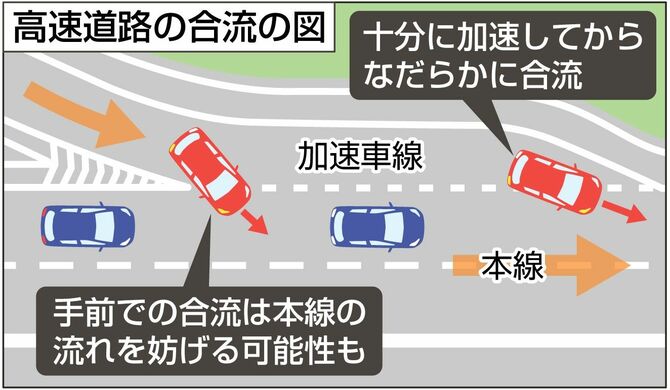 南北に長く、高速道路で移動する機会も多い新潟県。「加速車線から本線に合流する際、加速車線のどの位置から本線に入るのが正しいのか」。本紙に寄せられた疑問を新潟日報社の「もっとあなたに特別報道班」(もあ特)が調べた。東日本高速道路(NEXCO東日本)新潟支社は渋滞緩和や事故抑止のため、交通量が増えるお盆などに加速車線の先端付近で本線に合流することを周知しているが、県民にはいまひとつ浸透していない実態が見えてきた。