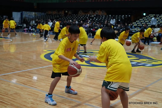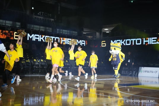 また、#0 田臥選手、#028 ブレッキー、BREXYがサプライズゲストとして写真撮影に参加し、田臥選手から参加の児童に「僕らがいつも使っているコートで思い切りバスケを楽しんでください」とメッセージが送られました。