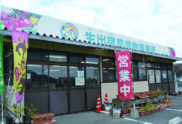 国道293号沿いの直売所で、地元産の豊富な種類の野菜や果物が並びます。軒先には干し柿もつるされ、来店する人を楽しませています。この時季はダイコン、白菜、キャベツ、ブロッコリー、イチゴなどが店頭を彩ります。