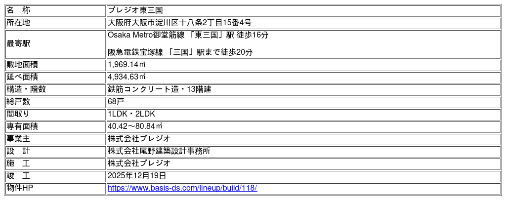 株式会社プレジオ(本社:大阪府大阪市/代表:上山 祐平)は、大阪府大阪市淀川区十八条2丁目において開発してまいりました、賃貸マンション「プレジオ東三国」が竣工しましたことをお知らせいたします。