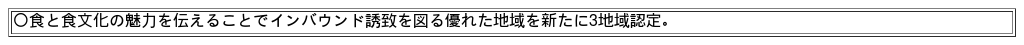 「SAVOR JAPAN」として新たに3地域を認定