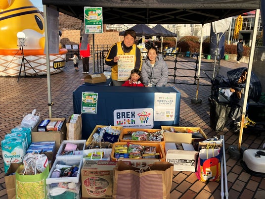 12月13日(土)、三遠ネオフェニックス戦の試合会場にて、持続可能な開発目標(SDGs)に取り組むプロジェクト「BREX with(ブレックス ウィズ)」の活動の一環として、フードバンクうつのみやとともに「フードドライブ」を実施しました。