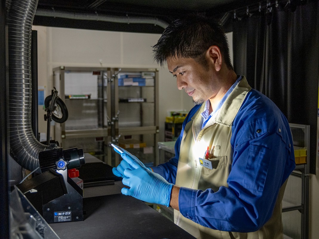 カメラレンズの芯取り加工現場で、生産リーダーと設備管理を担当しています。芯取りとは、わずか1点しかないレンズの光軸を見極め、外周をミクロン単位で切削する極めて精密な加工であり、カメラの性能や品質を左右する重要な工程です。製品・技術の進化に合わせてスキルを磨き、日々試行錯誤を重ねながら最適な方法を導き出しています。新製品に対応する治工具を設計するなど、自分のアイデアを形にできることがこの仕事の大きな魅力です。求められる精度を達成するプロセスは大変ですが、世界最高レベルの製品が完成した瞬間の達成感は格別で、自分の成長を実感できる瞬間でもあります。