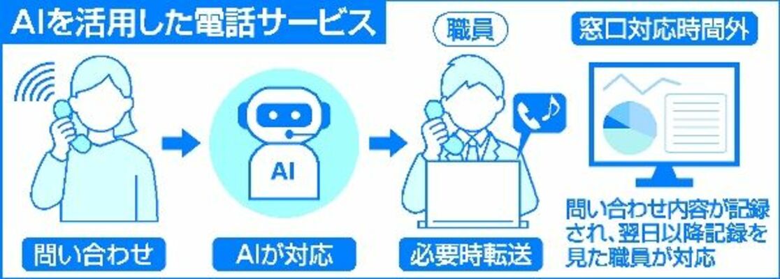 【那須】町は今月下旬から、町役場窓口のデジタル化を推進する「デジタル・フロントヤード改革事業」に取り組む。事業は(1)人工知能(AI)による電話サービスの開始(2)本人確認書類を活用した「書かない窓口」の導入(3)各種証明書発行手数料の支払い手続きの簡素化-の3本柱。利便性の高い行政サービスの提供を図るほか、窓口業務の効率化や職員の負担軽減にもつなげたい考えだ。