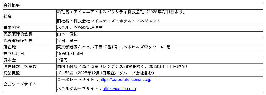 アイコニア・ホスピタリティ株式会社