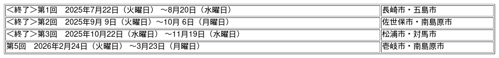 今年度は5回実施する予定としており、第4弾は諫早市(2事業者)・雲仙市(2事業者)・新上五島町(1事業者)のチャレンジ商品を販売します。