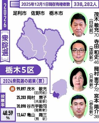 「やりづらい相手だ」。国民民主党候補の出馬表明を受け、自民党前職茂木敏充(もてぎとしみつ)氏(70)の陣営幹部は思わず本音を漏らした。「正直、『中道』の方が良かった。国民民主の発信力は侮れないし、浮動票の受け皿になる可能性がある」と警戒する。