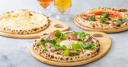 マルゲリータ1,300円、クアトロフォルマッジ1,350円、たっぷり野菜と生ハムのビスマルク1,680円(全て単品、税込)