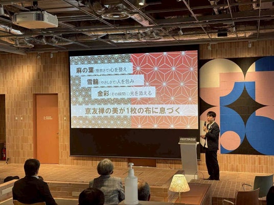 12月23日に大阪・京橋QUINTBRIDGEで開催されたピッチイベントに、8PEACEの市川哲郎さんが登壇しました。ピッチでは「文化の架け橋が紡ぐ地域と世界の心豊かな暮らし」をテーマに、アナログ要素の強い伝統工芸とXRをはじめとするデジタル技術との掛け合わせによって新たな体験を作り出す可能性について、現在取り組んでいる京友禅に関するプロジェクト「Kyo-YUZEN CONNECT」の紹介を交えてプレゼンテーションしました。