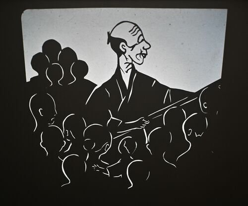 古屋敷を借りて学校に使っていた「仁兵衛(にへえ)学校」という学校の話です。先生は桜井(さくらい)先生といって、はげ頭で小さいちょんまげを結っていました。