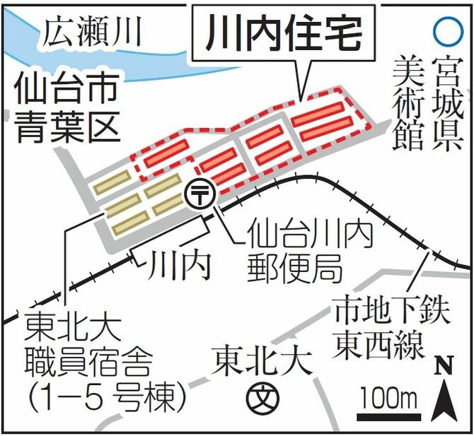 「国の財産が塩漬けにされている。なぜそのままにしているのか」。仙台市青葉区の無職男性(86)から河北新報の「読者とともに 特別報道室」に疑問の声が届いた。市地下鉄東西線川内駅(青葉区)の北側に立ち並ぶ国家公務員宿舎「川内住宅」の一部が約8年間も封鎖されたまま、手付かずとなっている。川内エリアで長年暮らす男性は「防犯の問題もある。早期に対応してほしい」と願う。(河北新報)