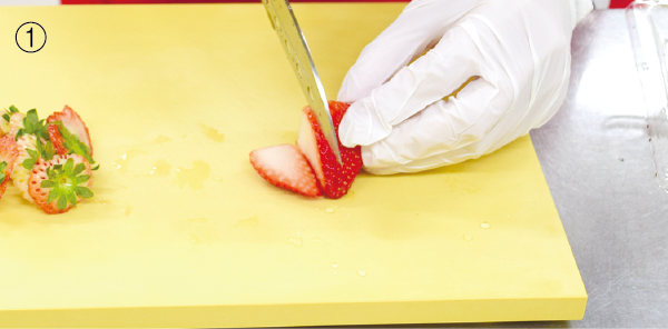※飾り用のイチゴは薄くスライスする。