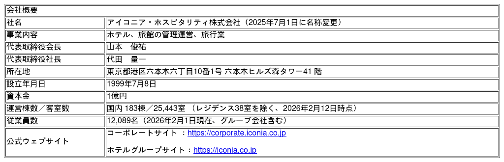 アイコニア・ホスピタリティ株式会社