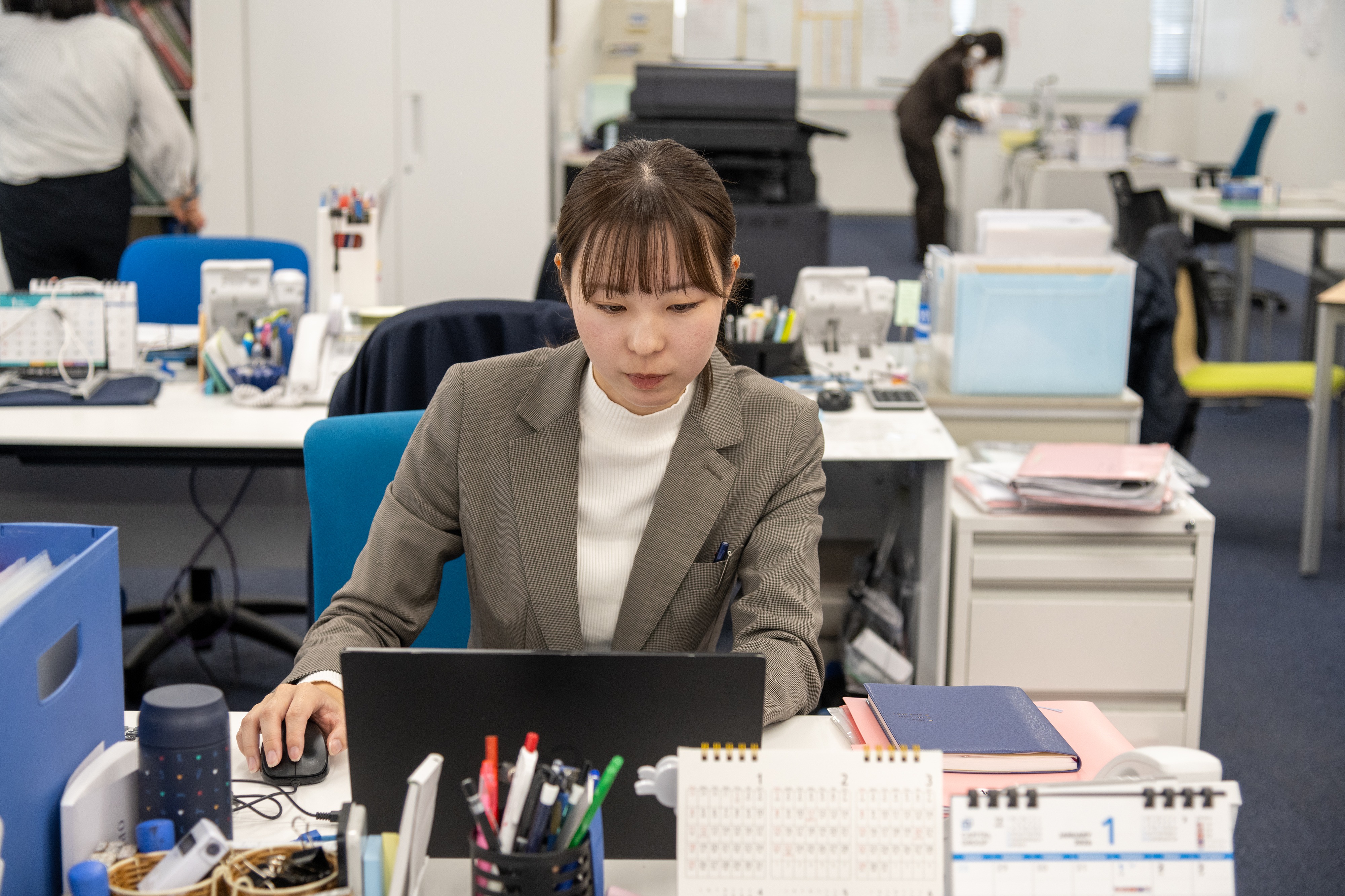 発展が著しい宇都宮東エリアには、競争力と高い事業意欲を持つ企業が多く、意志決定のスピードや柔軟性の高さを日々実感しています。トライアンドエラーを繰り返しながら経験を積む中で、対応できる業務領域は着実に広がっており、融資が設備投資として建物や機械といった具体的な形に結びつく瞬間に、大きなやりがいを感じています。現在は、業種・業態を問わず約80社のお客さまを担当しています。経営者の方々との対話を通じて、金融知識だけでなく、多様な価値観や経営の視点に触れられることも、この仕事の魅力のひとつです。お客さまとの面談を行う渉外業務と、稟議書の作成などの内勤業務を並行して行うため、綿密なスケジュール管理が求められますが、チームで連携しながら日々の業務に取り組んでいます。行内にはお互いに助け合う風土が根付いており、明るい雰囲気の中で仕事に向き合えています。チームには自分より若いスタッフもいるため、お客さまにも同僚にも頼られる存在になれるよう、一つひとつの業務に丁寧に取り組むことを心がけています。