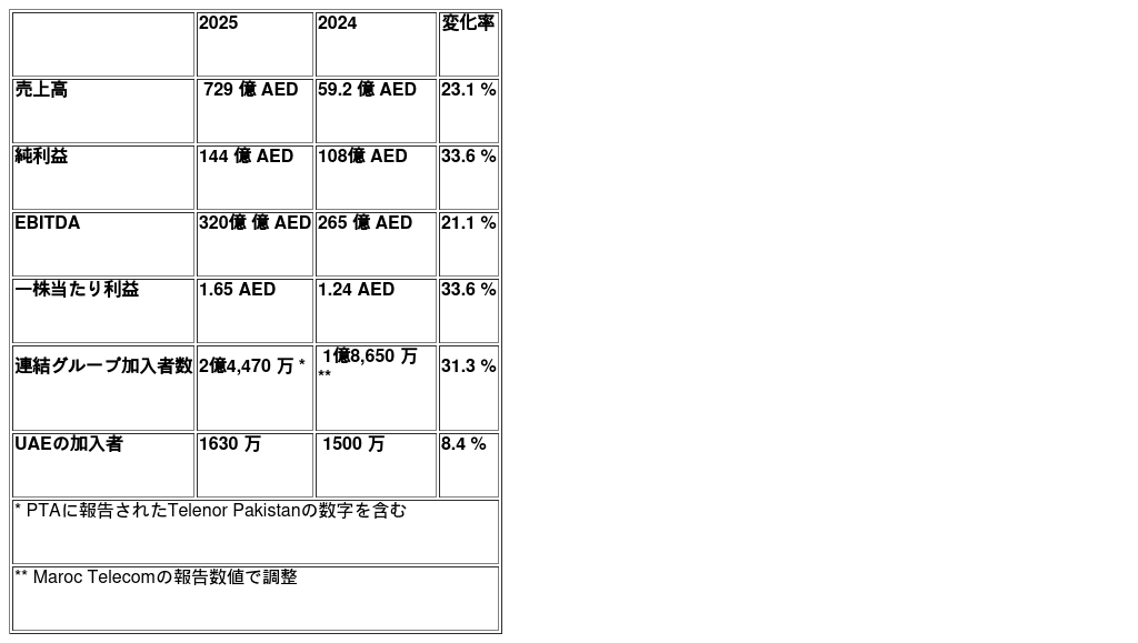 ABU DHABI, UAE, 2026年2月25日 /PRNewswire/ -- e&は2025年に記録的な業績を達成し、連結売上高は前年比(YoY)23.1%増の729億 AEDとなりました。