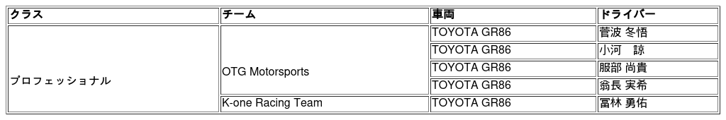■2026年四輪モータースポーツ活動計画概要