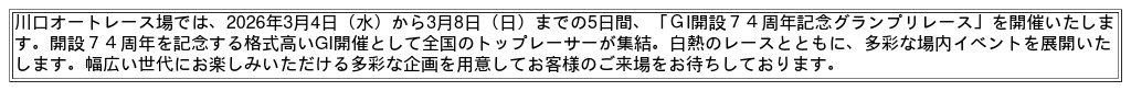 「GⅠ開設74周年記念グランプリレース」開催について
