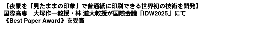 国際高専 大塚教授・林教授が国際会議「IDW2025」で《Best Paper Award》受賞