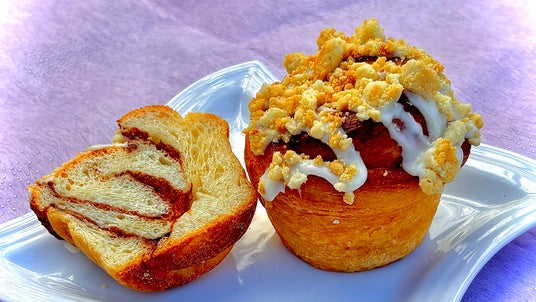 グランプリを受賞したベーカリー ペニーレイン「ロックンロール」は、那須高原産の卵を使用し、しっとりふわふわに仕上げた生地にパンチの効いた自家製シナモンペーストをロール。仕上げにはチーズを忍ばせたフォンダンソースを乗せ、ごつごつとした香ばしい食感の岩(ロック)のようなクランブルをトッピング。ロックとロールでペニーレインが織りなす食のロックンロールを表現しました。