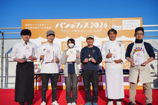 「パンのフェスアワード」は、2021年に誕生したパンのアワード(賞)です。6回目を迎える今回は、2025年1月~2025年12月に新発売されたパンを対象に、各出店パン屋さんを事前に訪れたお客様や、『パンのフェス2026 in 横浜赤レンガ』ご来場のお客様の投票をもとに、「グランプリ」「ゴールド」「シルバー」「ブロンズ」の各賞を決定。本日、会場内にて授賞式を行いました。