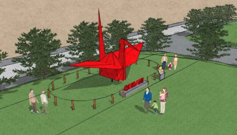 このままでは、上三川の良さや、「ORIGAMI のまち」としての顔を知ってもらう機会は限られたままです。そこで、全長 12m を超える折り紙モニュメントを、上三川町いきいきプラザの多目的広場に設置する構想を立ち上げました。