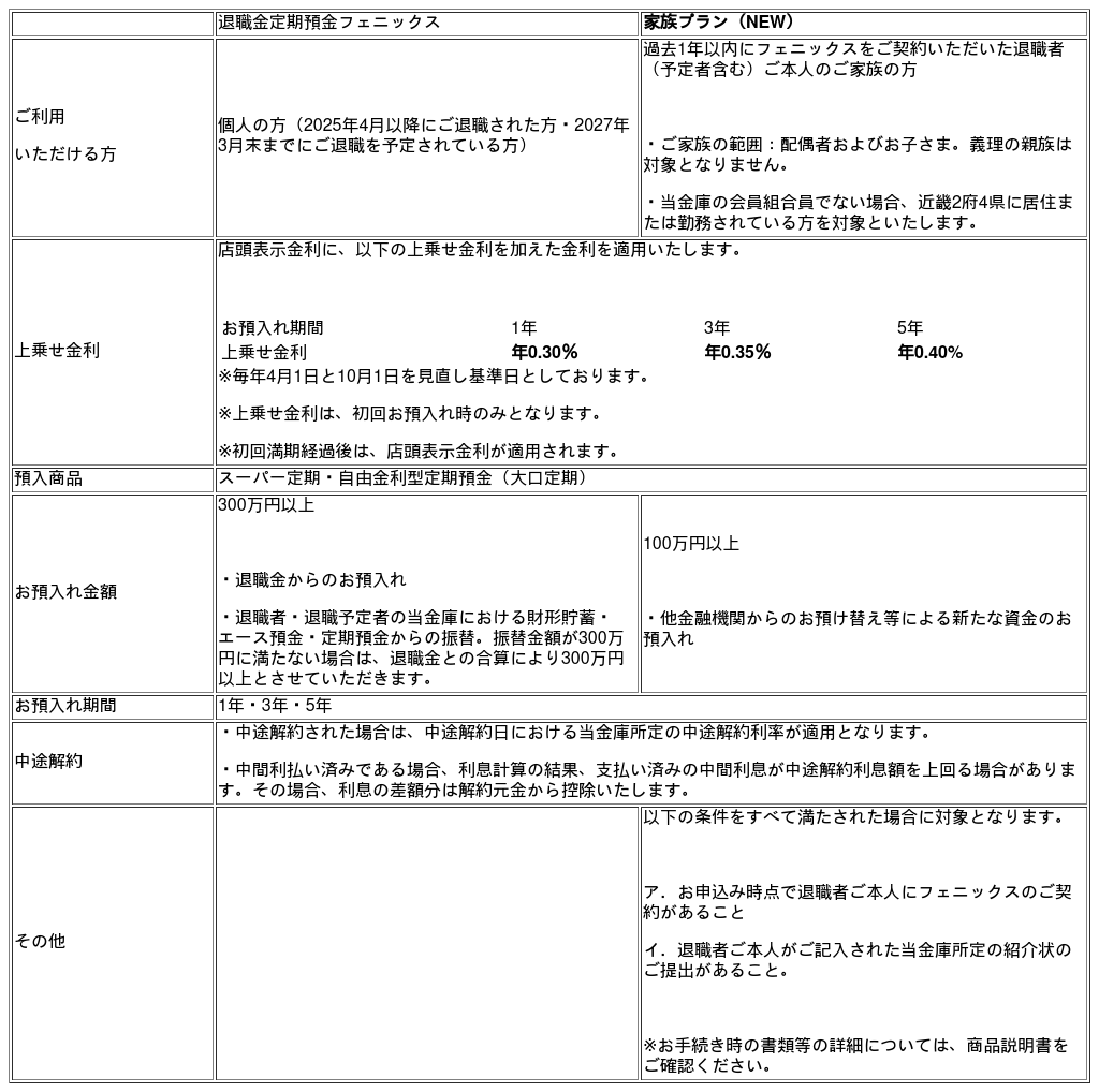 退職金定期預金「フェニックス」