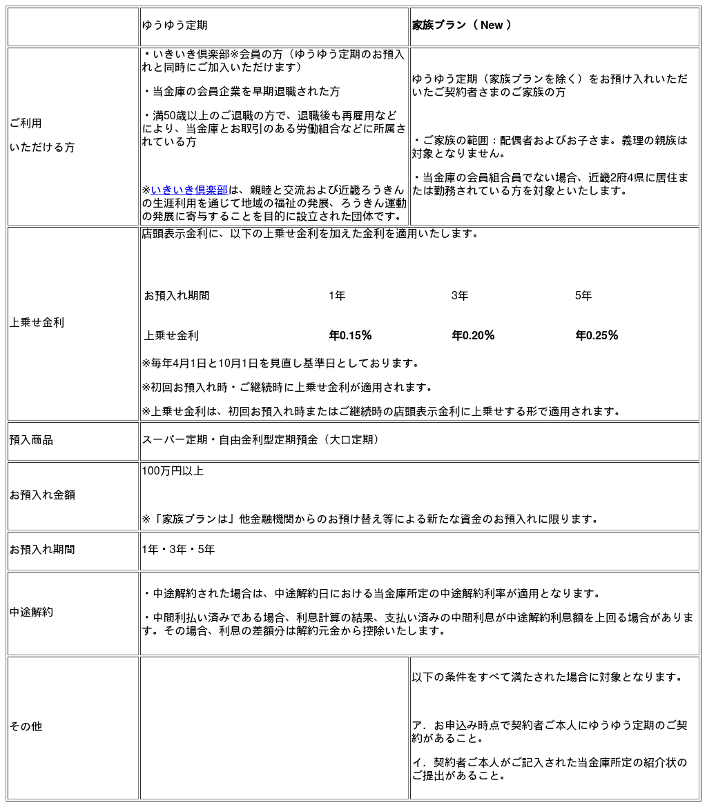 特別金利預金(定期預金)と「家族プラン」