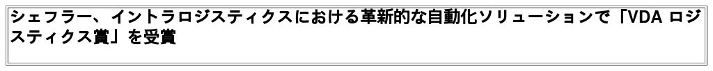 シェフラー、イントラロジスティクスにおける革新的な自動化ソリューションで「VDA ロジスティクス賞」受賞