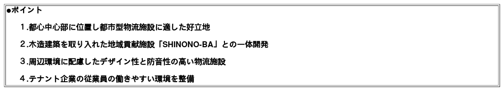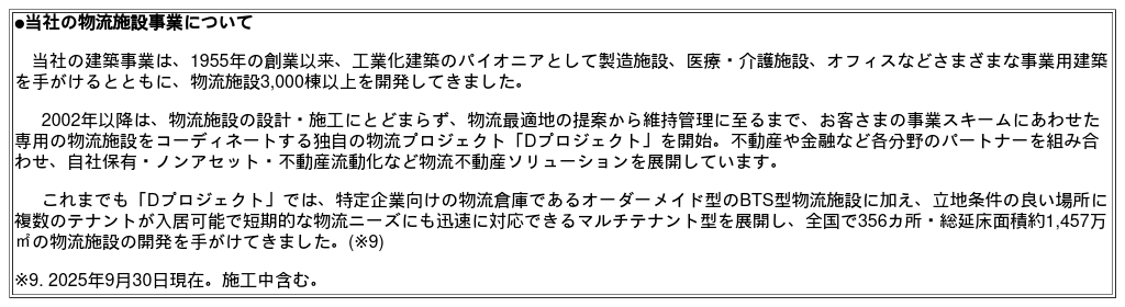 当社は今後も、都市部における高度化する物流需要に対応するとともに、環境・地域社会と調和した物流施設の開発を推進してまいります。