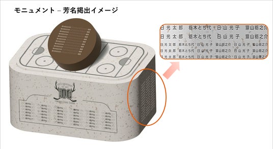 100年記念モニュメント台座への芳名掲出日光市内に建立される100年記念モニュメントの台座に、歴代の選手と一緒にあなたのお名前(または企業・団体名)を掲出いたします。