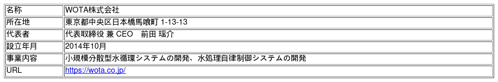 こうした中、WOTAは2014年の創業以来、生活排水を再生し最大限有効活用する「小規模分散型水循環システム」およびそれを実現する「水処理自律制御技術」の開発に取り組んでいます。