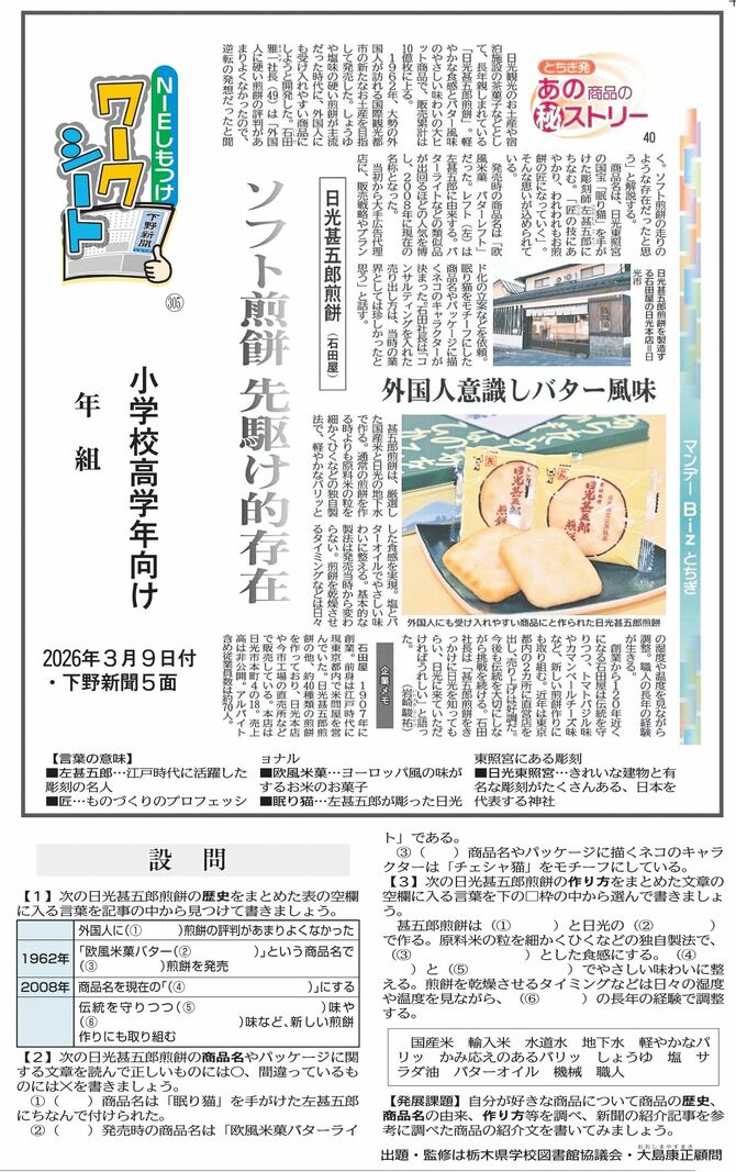 下野新聞の記事を使って社会への関心や読解力を高める「ワークシート」をスタートします。出題するのは、県小・中・高校教育研究会の国語・社会部会に所属する教員たち。ぜひ挑戦してください。