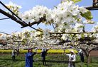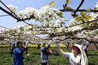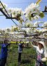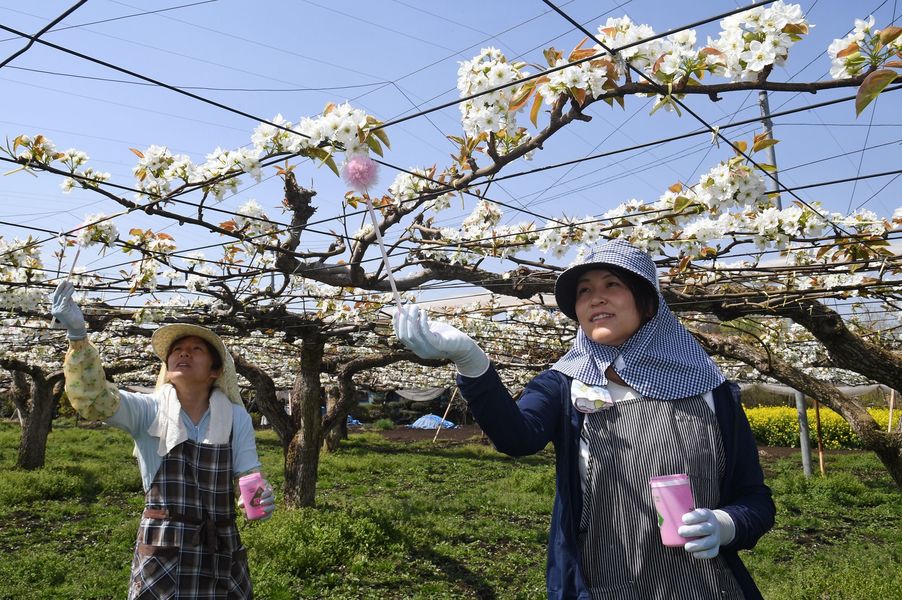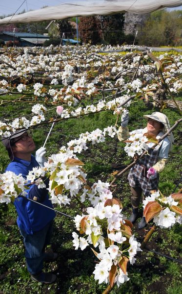 ナシの花満開で授粉作業 宇都宮