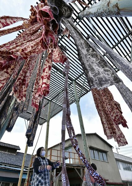 「ろうけつ染め」の浴衣天日干し 宇都宮