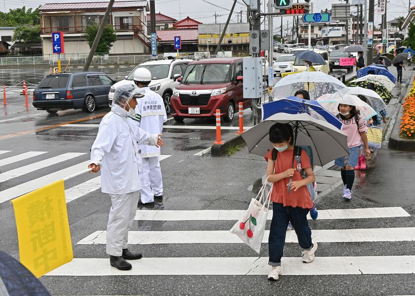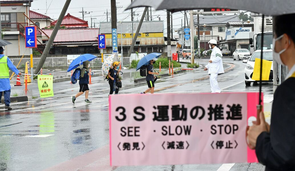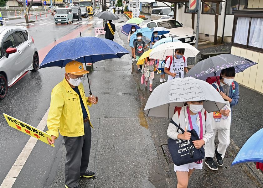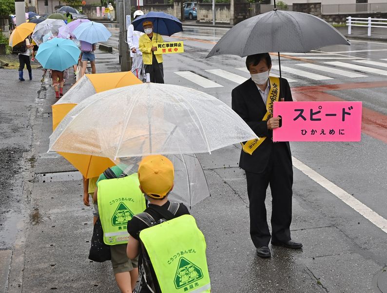 鹿沼の通学路で交通安全指導