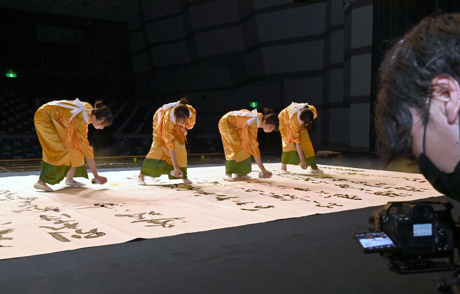 高校生の書道パフォーマンス