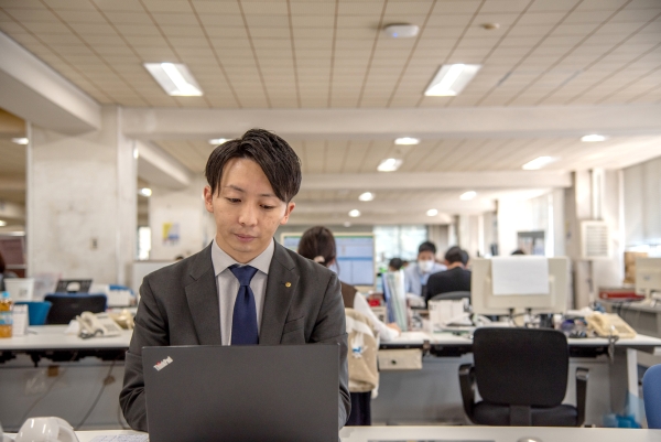 本部のスタッフとして各営業店に臨店し、営業店の行員とともに地元企業の課題解決に資するコンサルティング業務を提供しています。入行当時は、本店営業部に配属され、個人のお客様に対する資産運用の相談業務を担っていました。