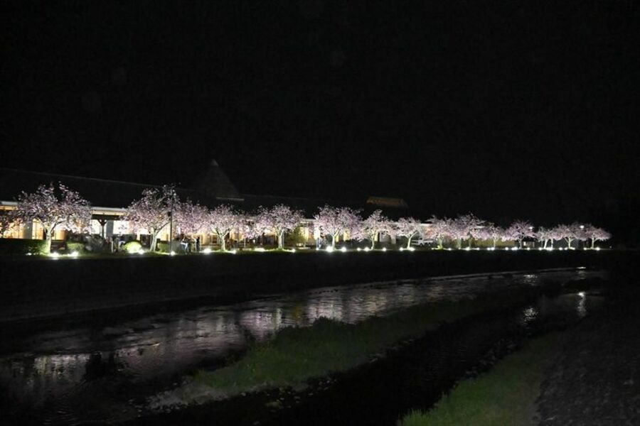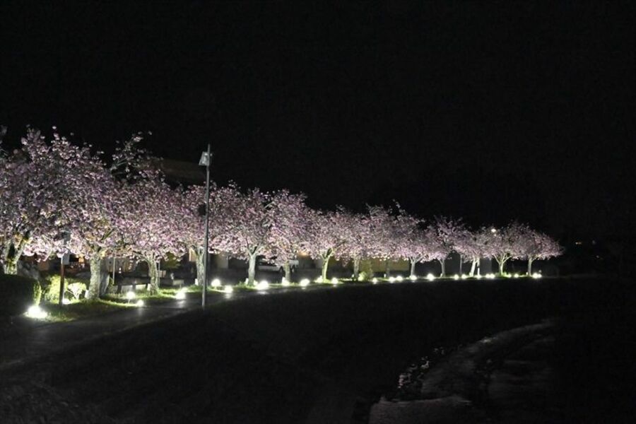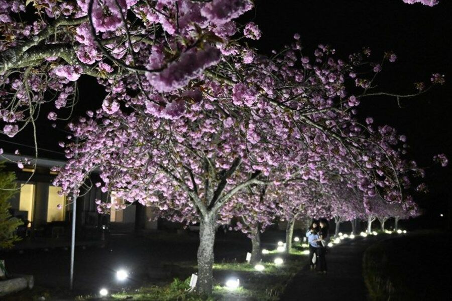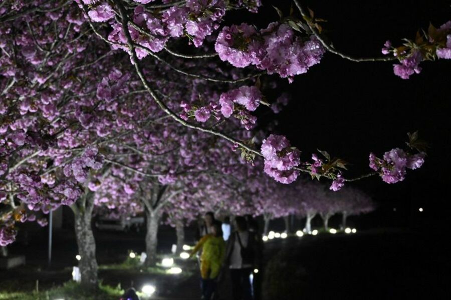ぼたん桜が満開 芳賀温泉ロマンの湯