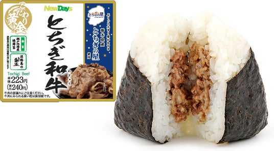 10月29日発売 税込240円栃木県産の銘柄牛「とちぎ和牛」をシンプルに塩、こしょうで味付けし、ご飯でふっくら包みました。栃木県のお米で栃木県の美味しい具材をにぎった、とっておきのおにぎりです。