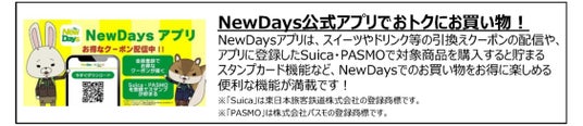 NewDaysアプリと連携したJRE POINTを利用して、キャンペーン対象商品をおトクなポイント数でクーポンに交換できます。詳しくはNewDaysアプリをご確認ください。