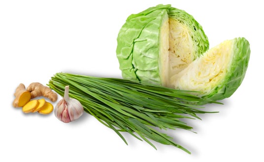 2. こだわりの国産野菜を使用 ニラ・キャベツなどの地元新鮮野菜を中心に青森産にんにくや高知県産しょうがなどの国産野菜をたっぷり使用しています。