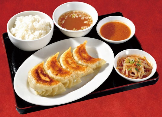 ジャンボ餃子 定食 ジャンボ餃子をガッツリ楽しみたい方にはライスとスープ、タレ漬けもやしがセットになった定食をご用意しています。ランチやディナーにぜひご利用ください。