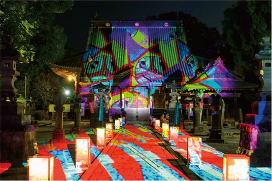 『足利灯り物語』は足利市の史跡足利学校、鑁阿寺、足利織姫神社といった文化遺産を、各所に設置される銘仙柄の行灯と共に温かみのある灯りでライトアップする事業です。