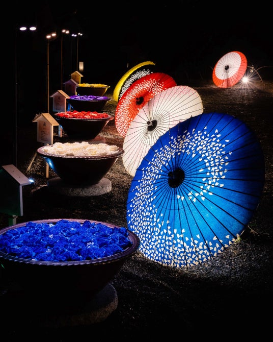 (株)足利フラワーリゾート(本社 栃木県足利市田中町906-13 代表 早川公一郎)が運営を行う、あしかがフラワーパークは、足利灯りのある街づくり実行委員会が主催する『足利灯り物語』において日本最古の学校である史跡足利学校を花手水と和傘、竹灯りと竹鞠を使用した花と光の魔法で期間限定演出いたします。