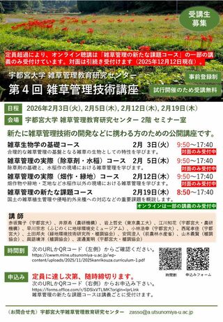 効果的な除草を知ろう 宇都宮大の専門機関で無料講座 2026年2月、社…