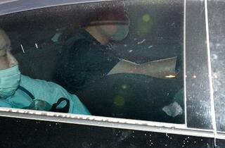 警視庁四谷署を出る草間リチャード敬太容疑者(中央)=4日午後7時46分
