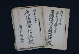 「原爆戦災記録綴」(左)と「広刑記録綴」